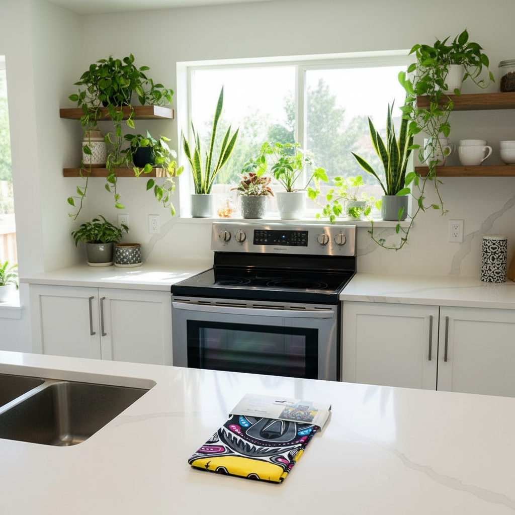 This apron, made from 100% cotton and measuring 26.8" x 31.5", showcases authentic Indigenous artwork by Anishinaabe Artist Jackie Traverse. Each sale includes a royalty payment to the artist, supporting her creative work. Combining quality fabric with culturally significant design, this apron offers both practical use and meaningful artistic expression.