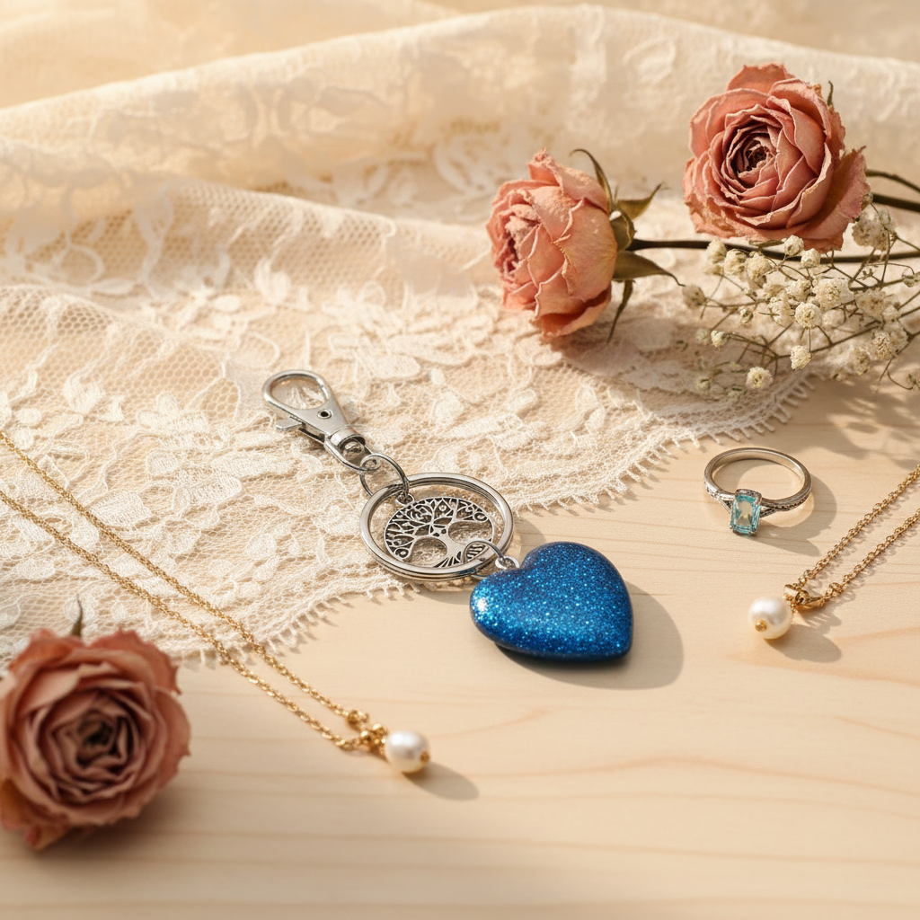- Hand-poured turquoise epoxy resin heart with sparkle finish