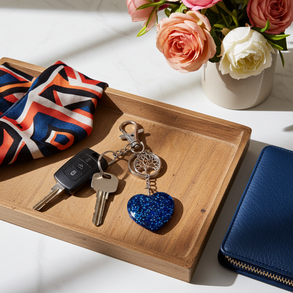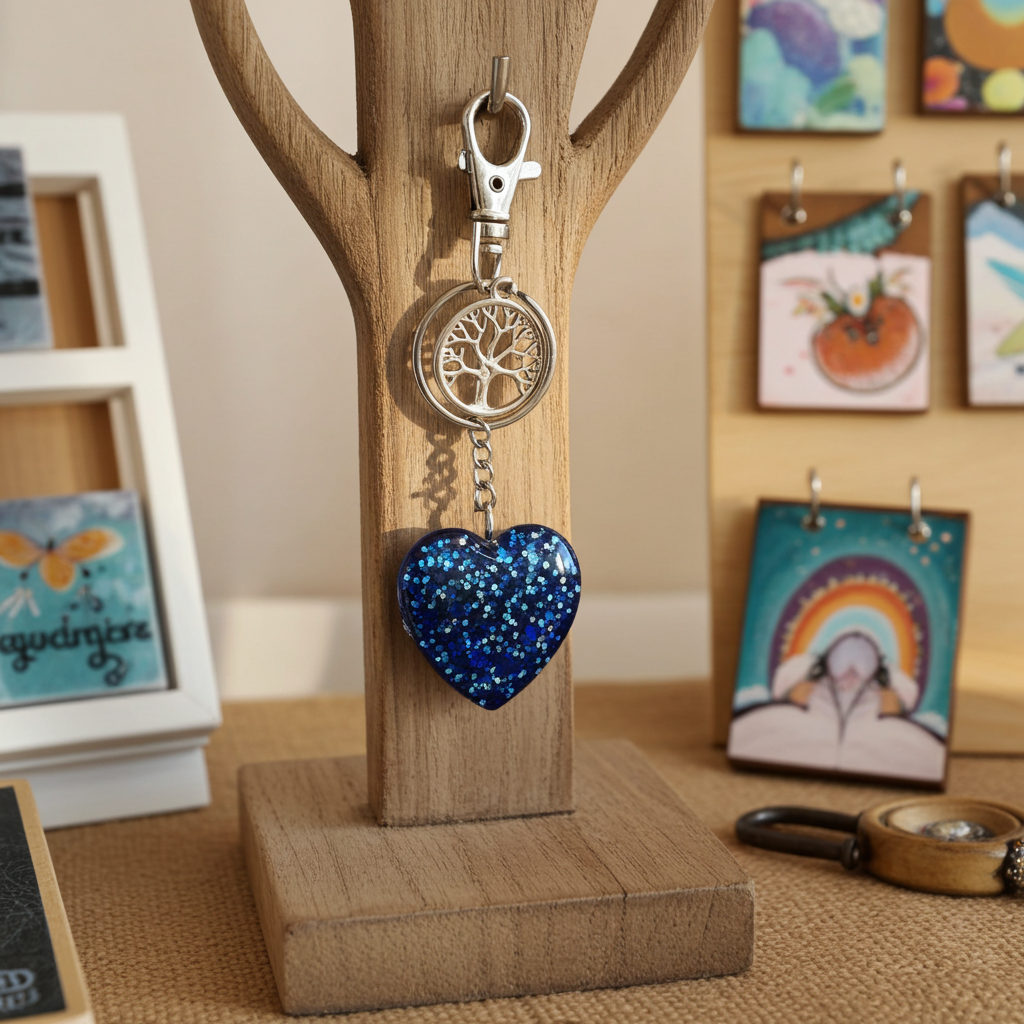 Tree of Life Heart Keychain - Handcrafted Epoxy Resin Charm
