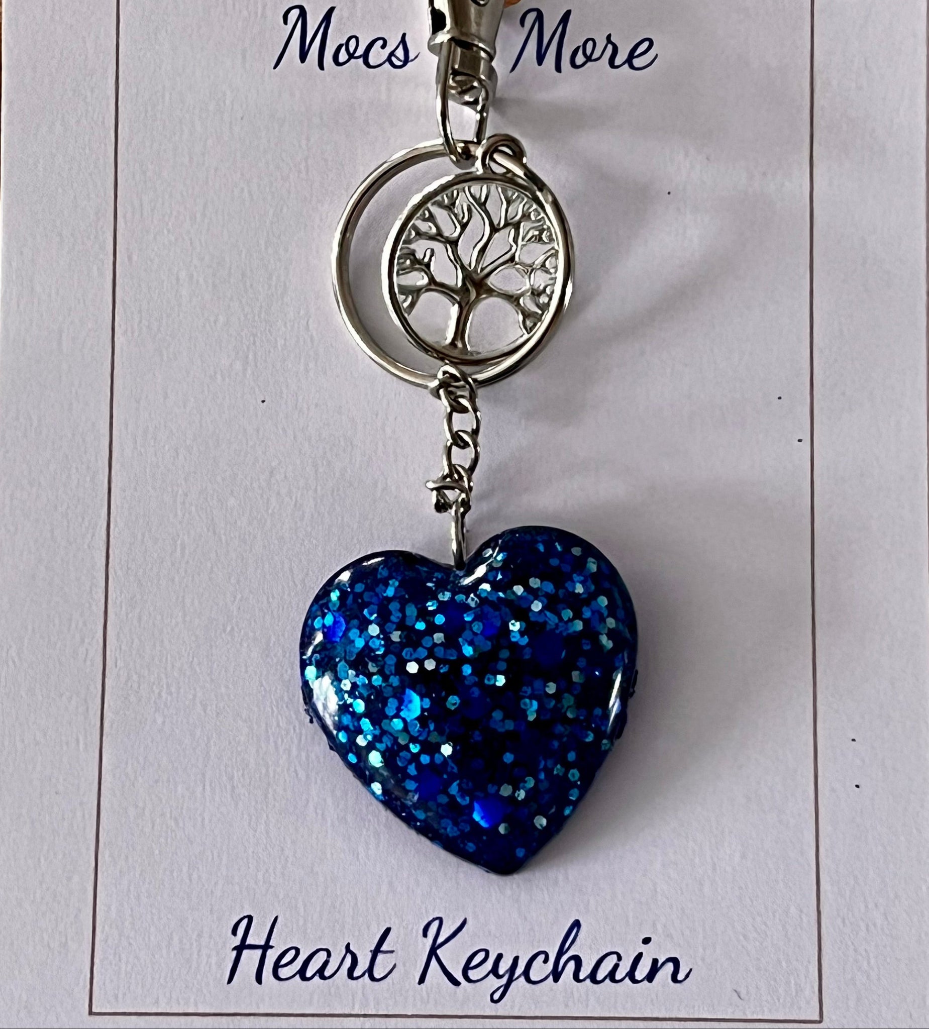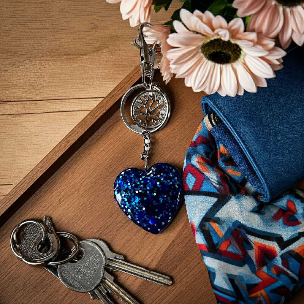 Carry a little magic wherever you go! This custom-poured heart charm features stunning royal blue epoxy resin swirled with shimmering blue sparkles and a delicate Tree of Life charm.