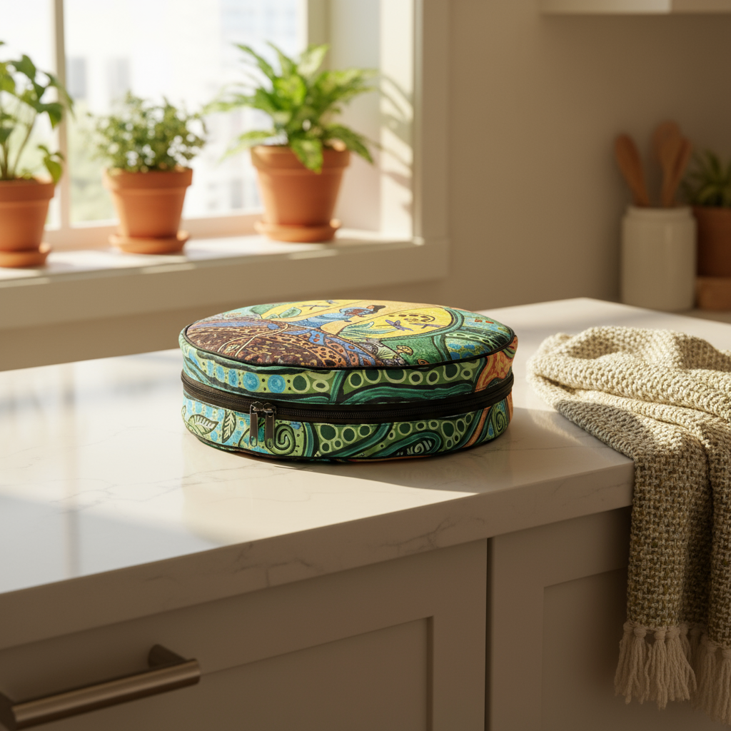 Celebrate the powerful bond between women and the earth with the Strong Earth Woman 14" drum bag, designed by Métis artist Leah Dorion. This vibrant bag reminds us that balance—physical, emotional, mental, and spiritual—is the key to well-being. Perfect for carrying your drum with a touch of soulful energy and style!