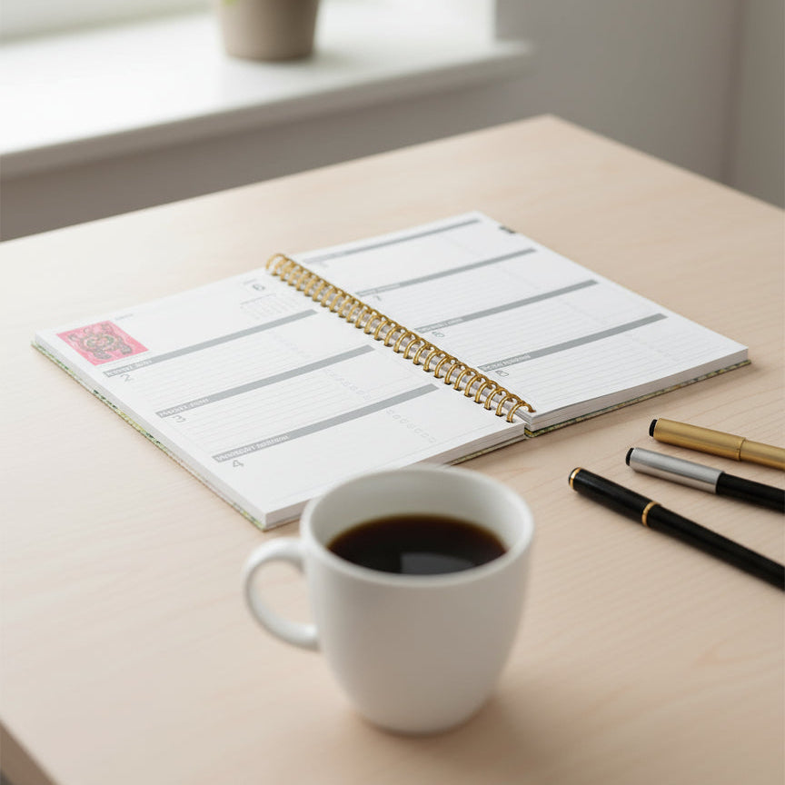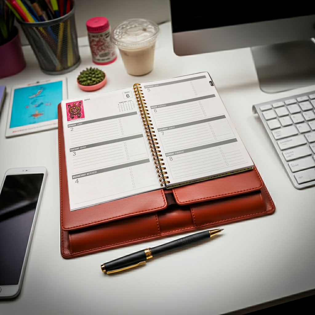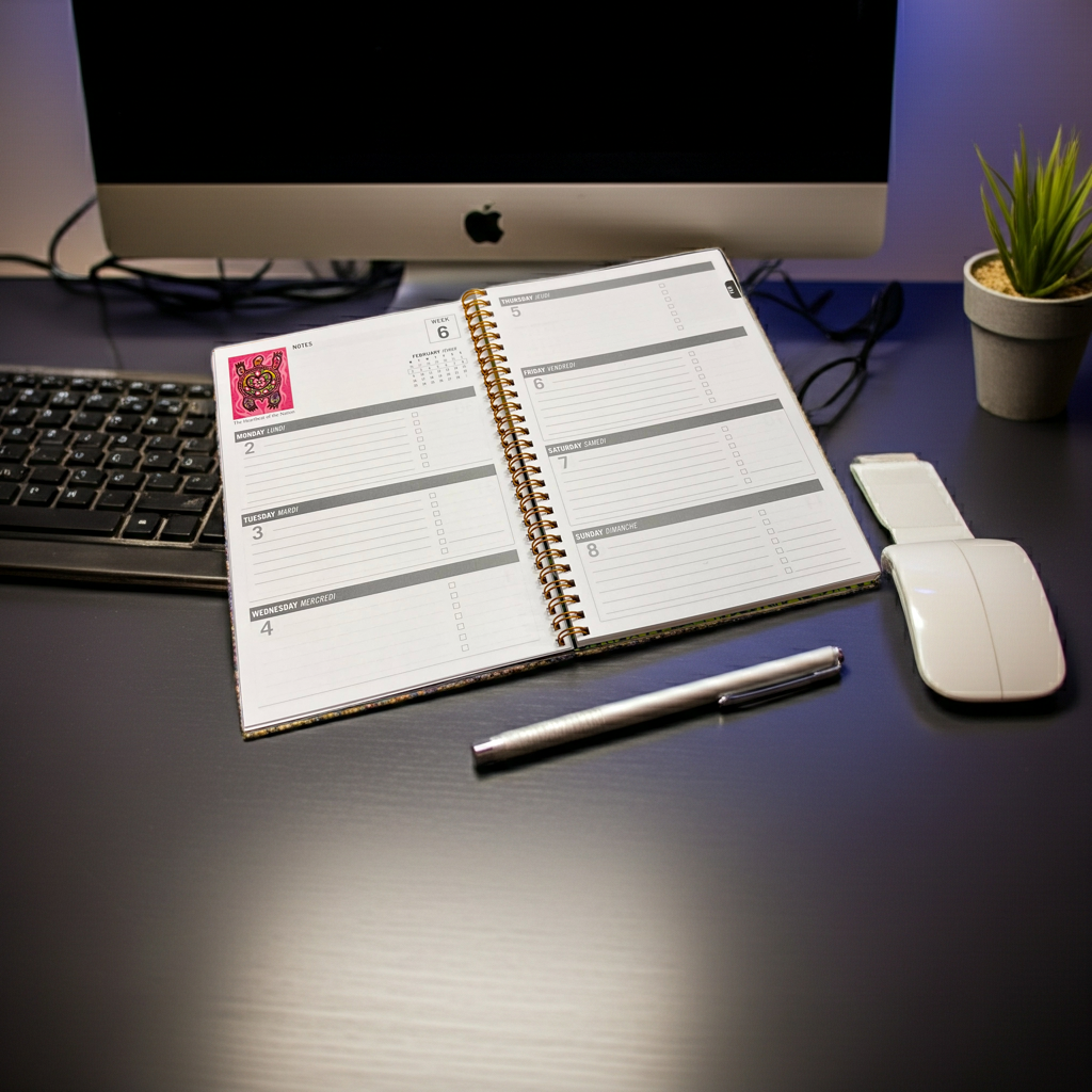 This Weekly Planner is designed to help you stay organized even in the busiest of weeks. It features a 12-month 2026 weekly planner, a 2026-2027 Calendar, 128 beautifully coloured pages that include featured art every month, 6 full-page images, and a brass twin-wire binding, all printed on high-quality paper. The 6”x9” size makes it easy to carry around, so you can stay organized without any extra effort.