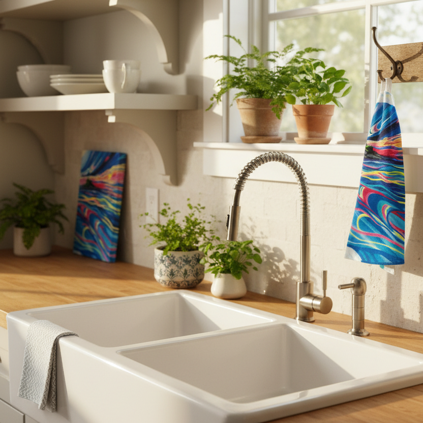Crafted from ultra-absorbent, high-quality microfiber, this 19.7" x 27.5" tea towel combines exceptional functionality with inspiring Indigenous design. The vibrant Reflect and Grow artwork maintains its brilliant colors through countless washes, making it perfect for everyday kitchen use or as a beautiful display piece that brings purpose and cultural appreciation to your space.
