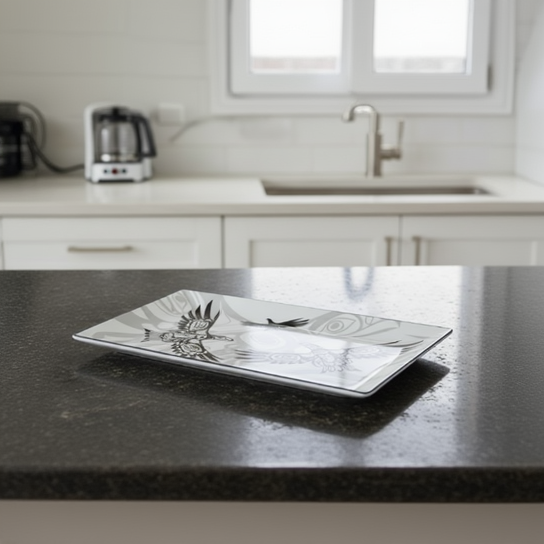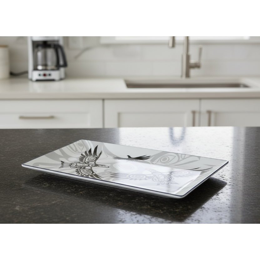 Indulge in a touch of elegance with our Soaring Eagle Platter. Adorned with stunning Indigenous designs, this platter adds texture, color, and shape to your table setting. Pair it with our Appetizer Plates and Flatware for a truly harmonious dining experience. Its microwave and dishwasher safe features make it a practical yet beautiful addition to your collection.