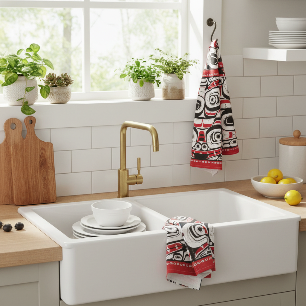Crafted from ultra-absorbent, high-quality microfiber, this 19.7" x 27.5" tea towel combines exceptional functionality with powerful Indigenous design. The vibrant Matriarch Bear artwork maintains its brilliant colors through countless washes, making it perfect for everyday kitchen use or as a beautiful display piece that brings strength, wisdom, and cultural appreciation to your space.