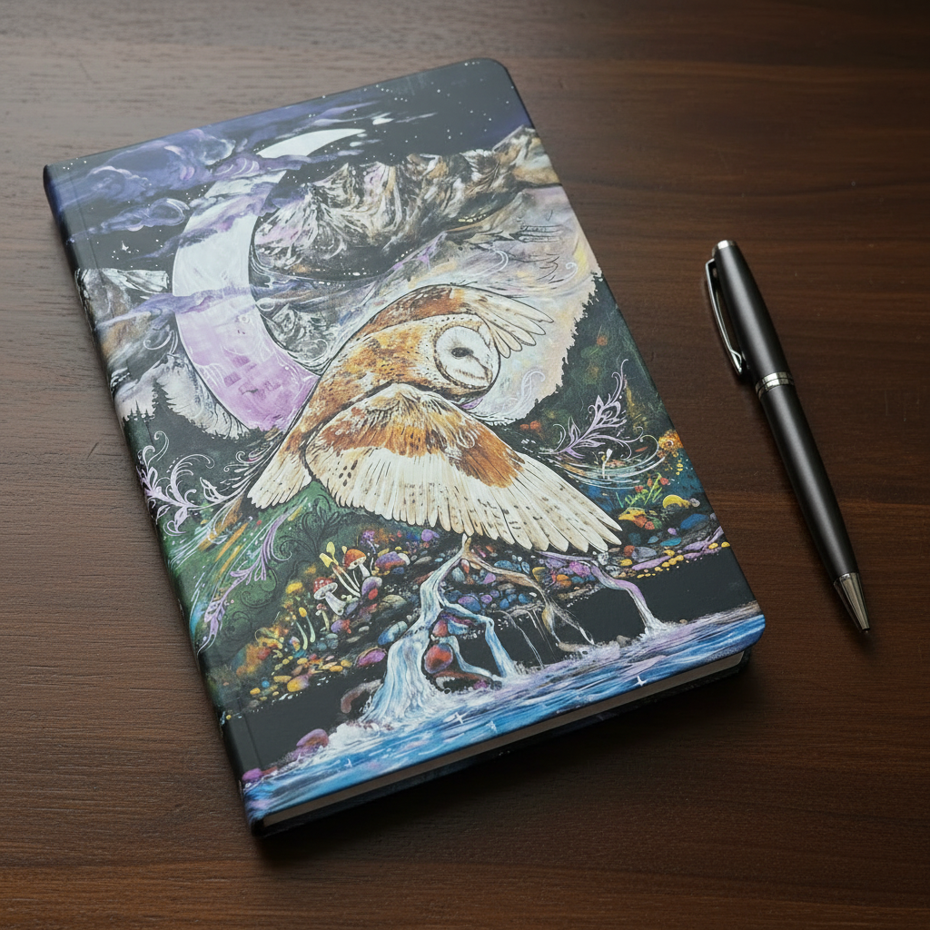 Transform everyday moments into meaningful memories with this stunning Owl Mountain journal, featuring authentic Indigenous artwork by Carla Joseph.