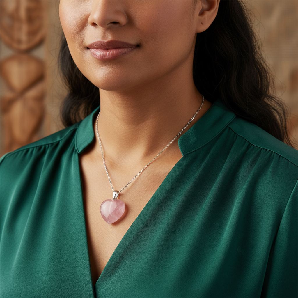 - Beautiful heart-shaped pendant symbolizes love and healing