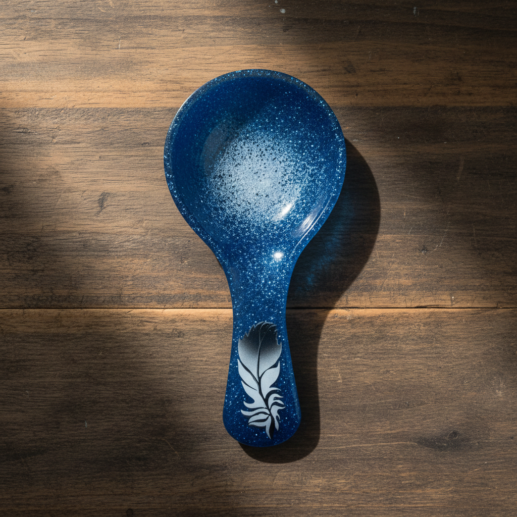 Introducing our beautiful Blue Pearl Feather Spoon Rests from Mocs N More! Made with hand-painted feathers and unique design, this spoon rest is both functional and stunning. Perfect for kitchen gifts and adding a touch of elegance to your cooking routine. Handcrafted with care for a beautiful addition to your kitchen decor.