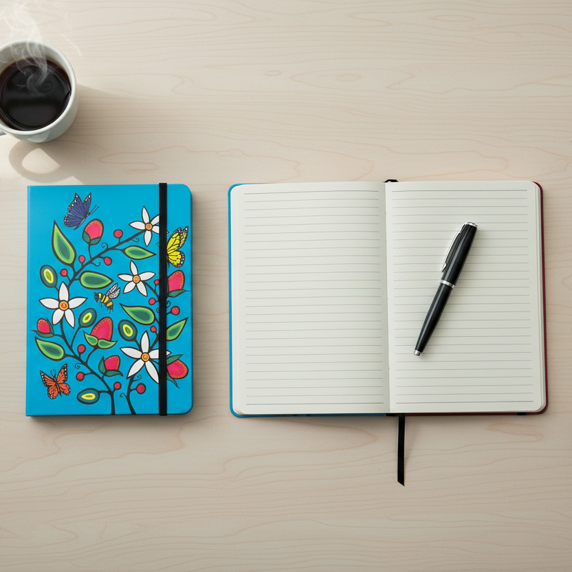 Transform everyday moments into meaningful memories with this stunning Berry Garden journal, featuring authentic Indigenous artwork by Jeffrey Red George.