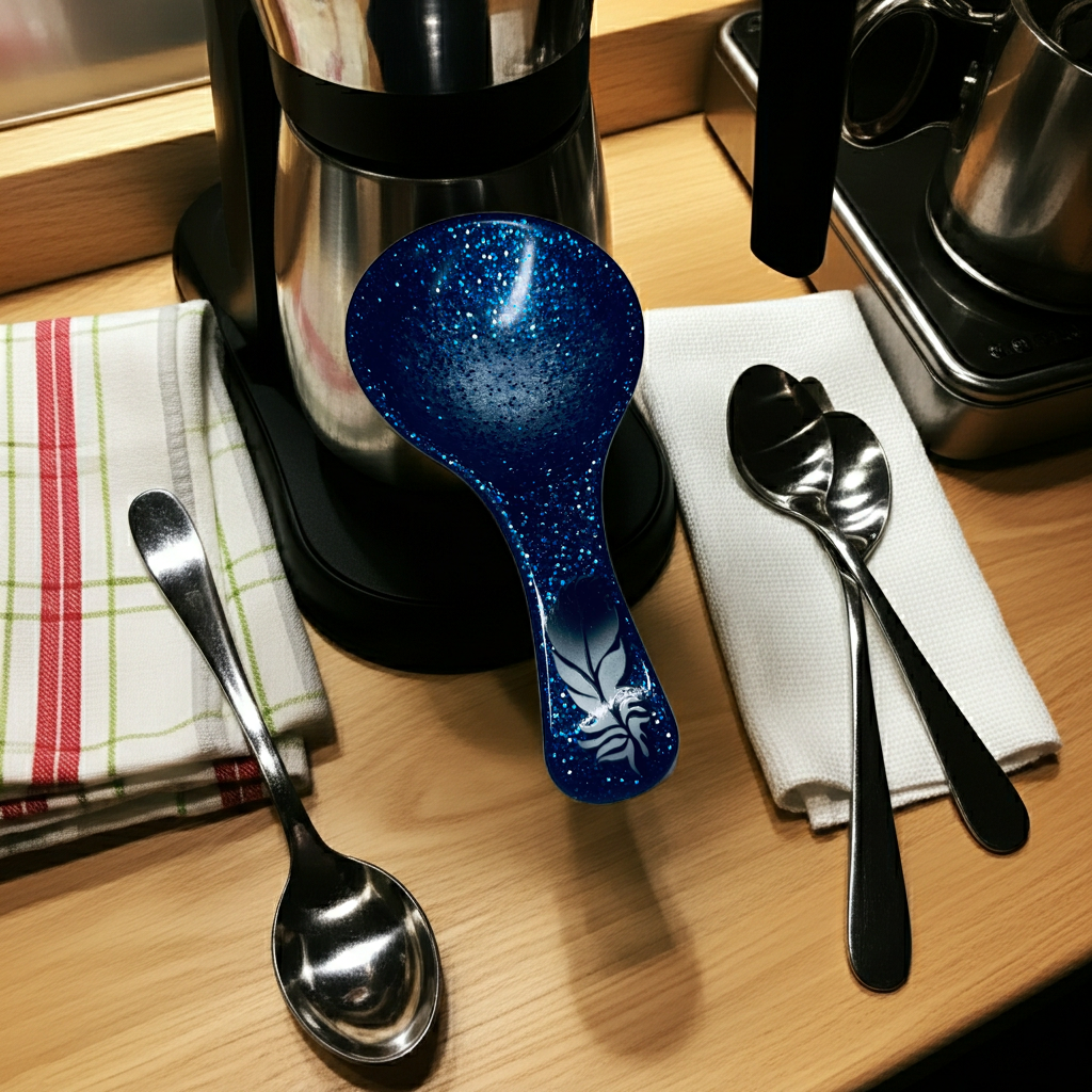 Introducing our beautiful Blue Pearl Feather Spoon Rests from Mocs N More! Made with hand-painted feathers and unique design, this spoon rest is both functional and stunning. Perfect for kitchen gifts and adding a touch of elegance to your cooking routine. Handcrafted with care for a beautiful addition to your kitchen decor.