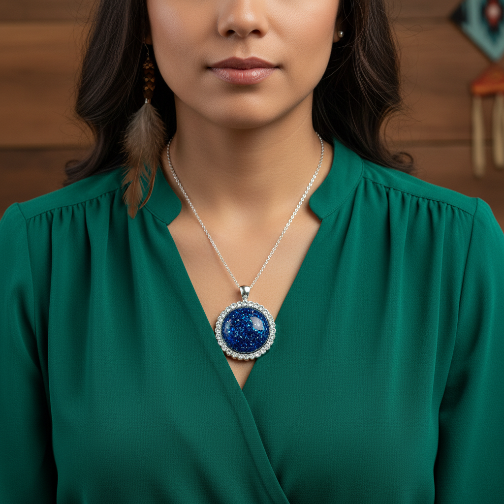 Wear your strength with pride. The Celestial Spirit pendant necklace features a beautifully handcrafted epoxy resin pendant with shimmering sparkles, designed to inspire confidence and inner strength.