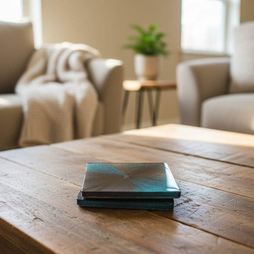 Handcrafted at Mocs N More, these artisan coasters bring depth and elegance to any space, making them perfect gifts for loved ones or a beautiful addition to your own home.