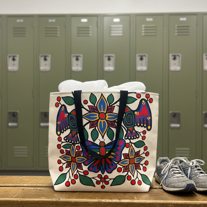 These authentic indigenous art tote bags are expertly crafted to be both stylish and functional. Made with durable canvas and featuring a generous size of 20 x 15 x 6, our tote bags are perfect for everyday use. With a fully lined interior, inside pocket, and zipper closure, they provide plenty of storage space and convenience. Plus, with each sale, the artist or copyright holder receives a royalty, supporting their work and culture.