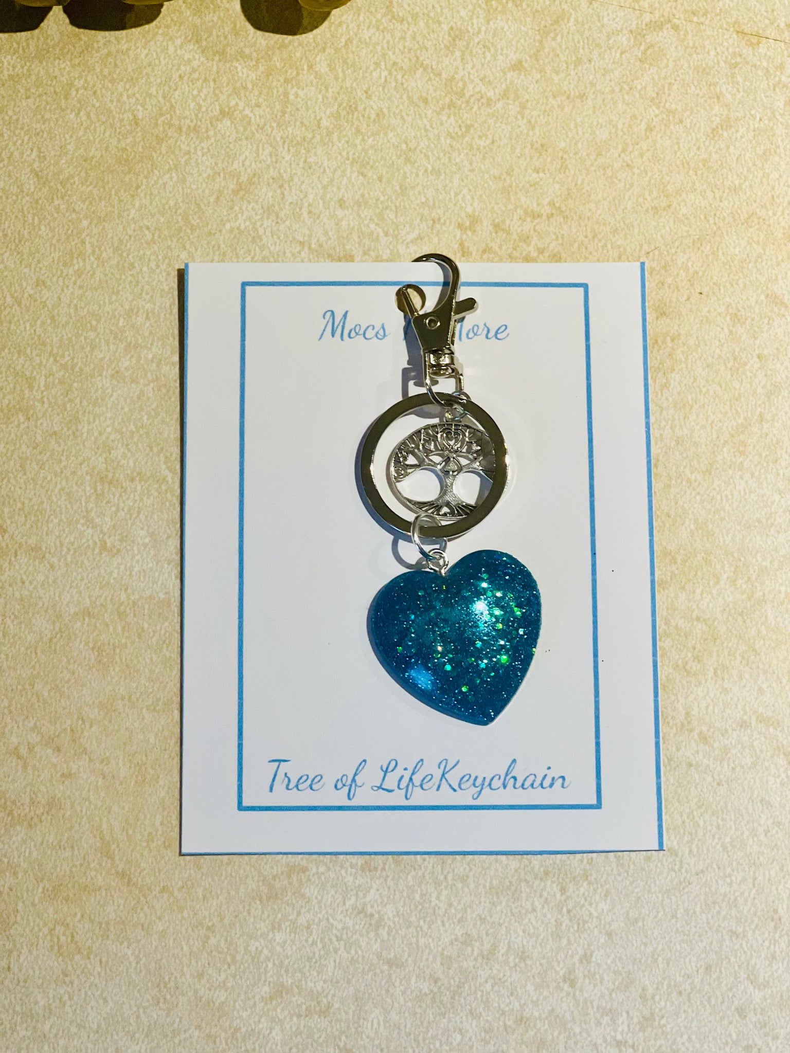 Turquoise Heart Tree of Life Keychain - Hand-Poured Epoxy Resin